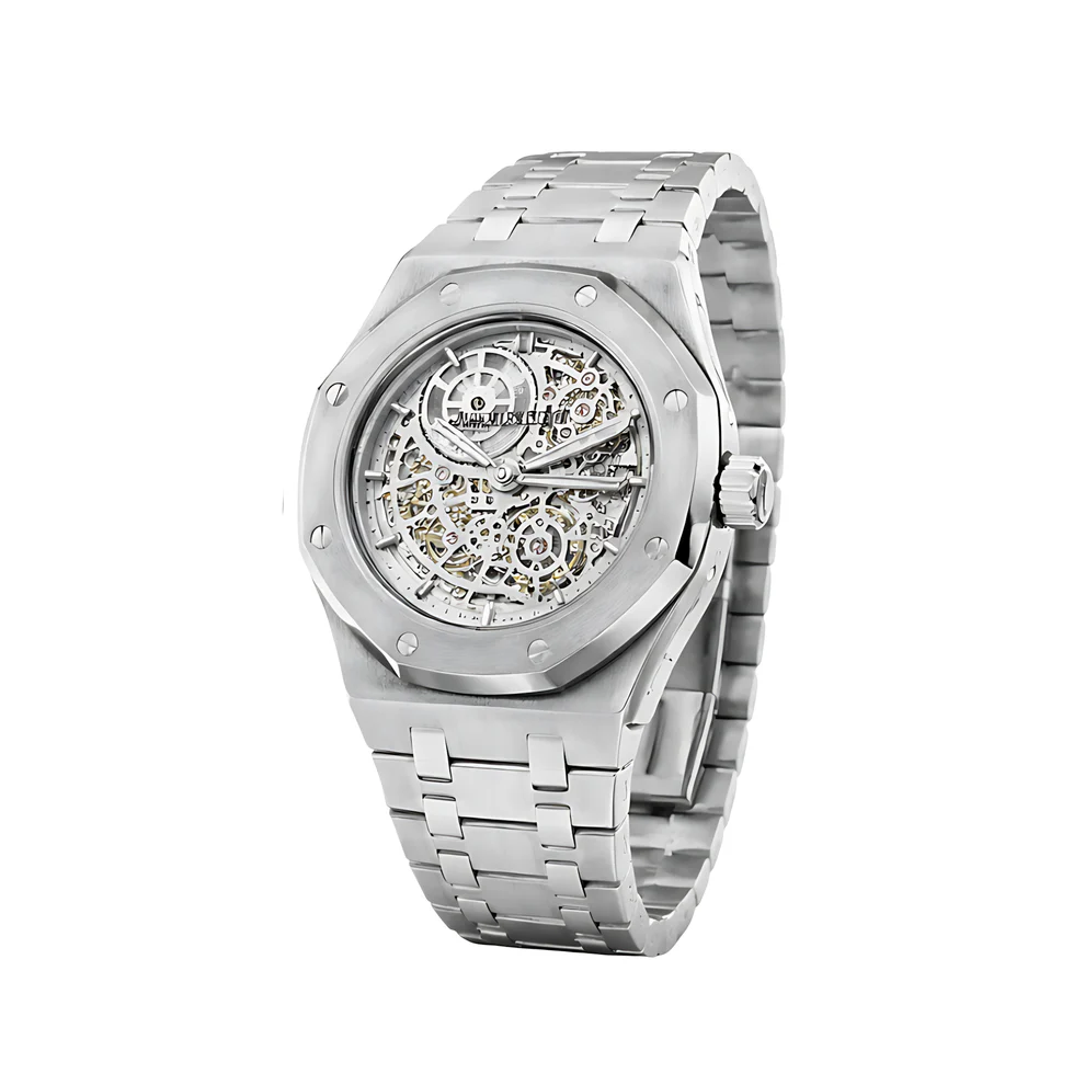 Audemars Piguet Royal Oak Jumbo Extra-Thin Openworked Silver A modern luxury-sport design combining elegance with daily wearability.
