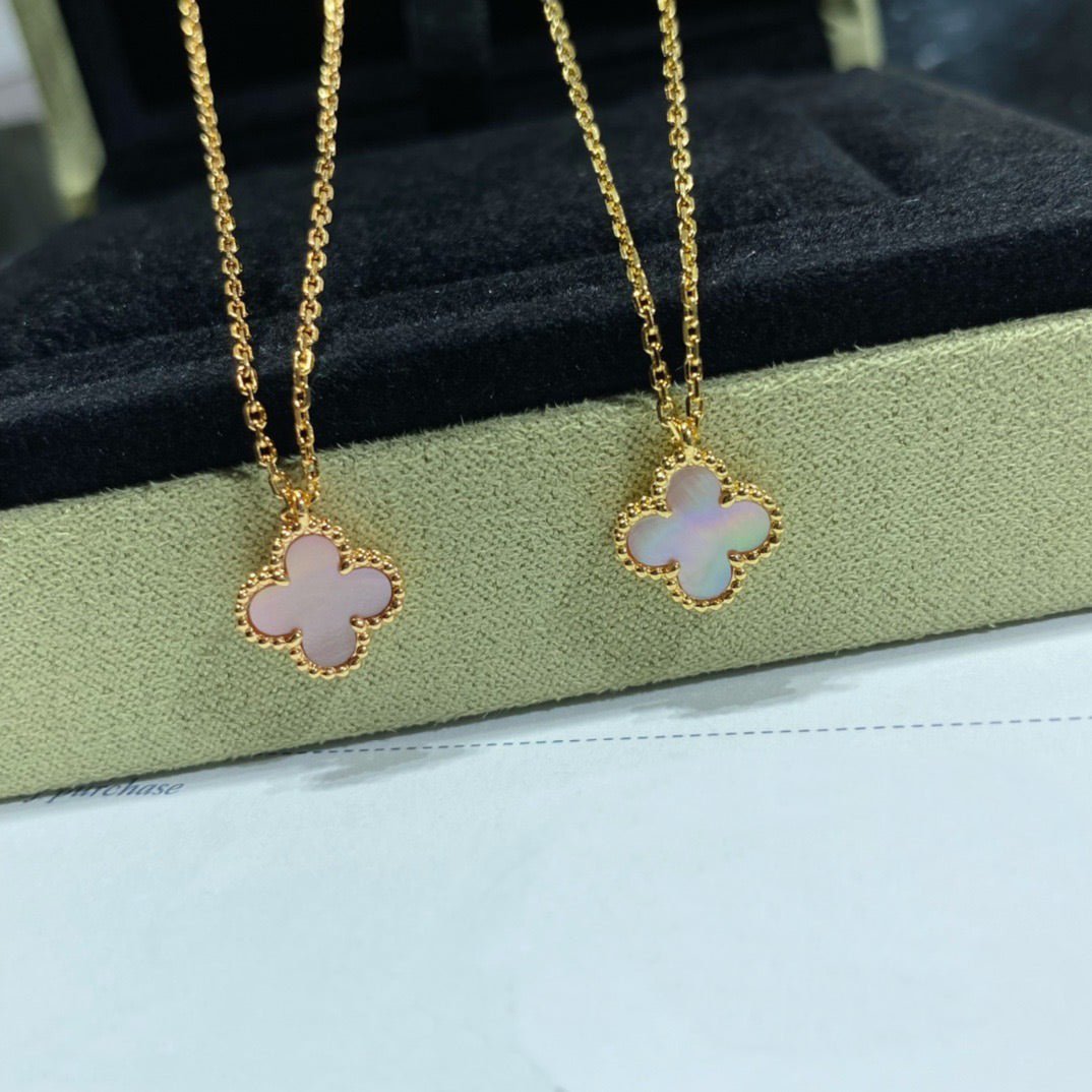 CLOVER 15MM PINK MOTHER-OF-PEARL SINGLE FLOWER NECKLACE
