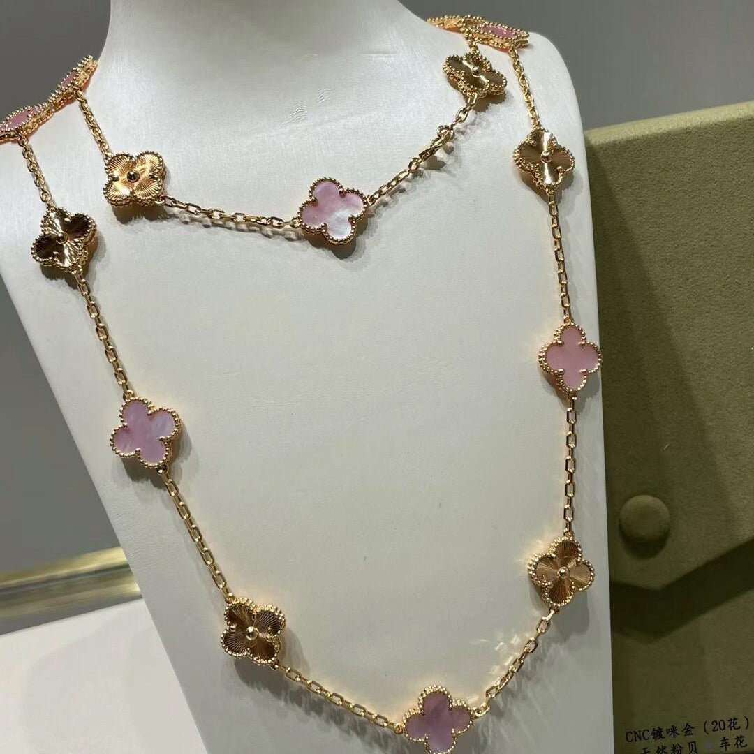 CLOVER 20 MOTIFS LASER PINK MOP NECKLACE