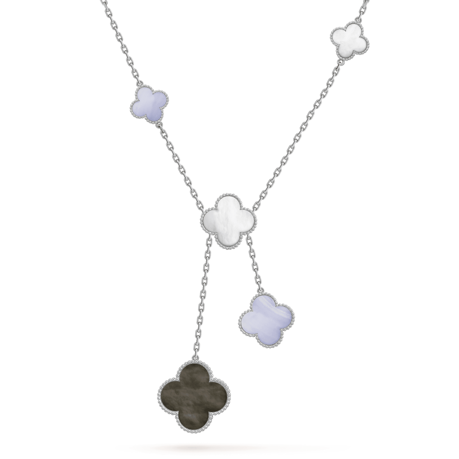 CLOVER MOP CHALCEDONY NECKLACE SILVER 6 MOTIF