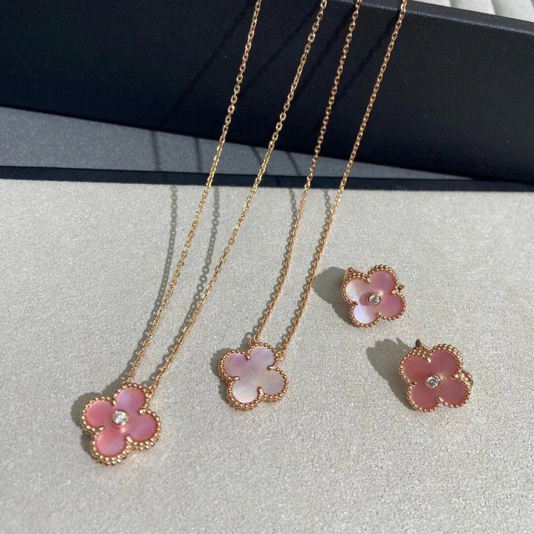 CLOVER MEDIUM 1 DIAMOND PINK EARRINGS