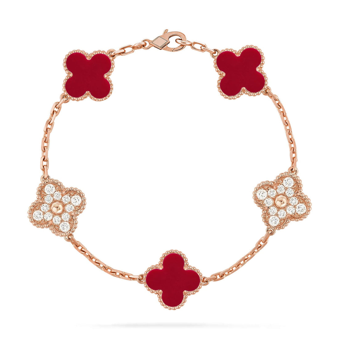 CLOVER 5 MOTIF RED CORNELIAN BRACELET COLLECTION